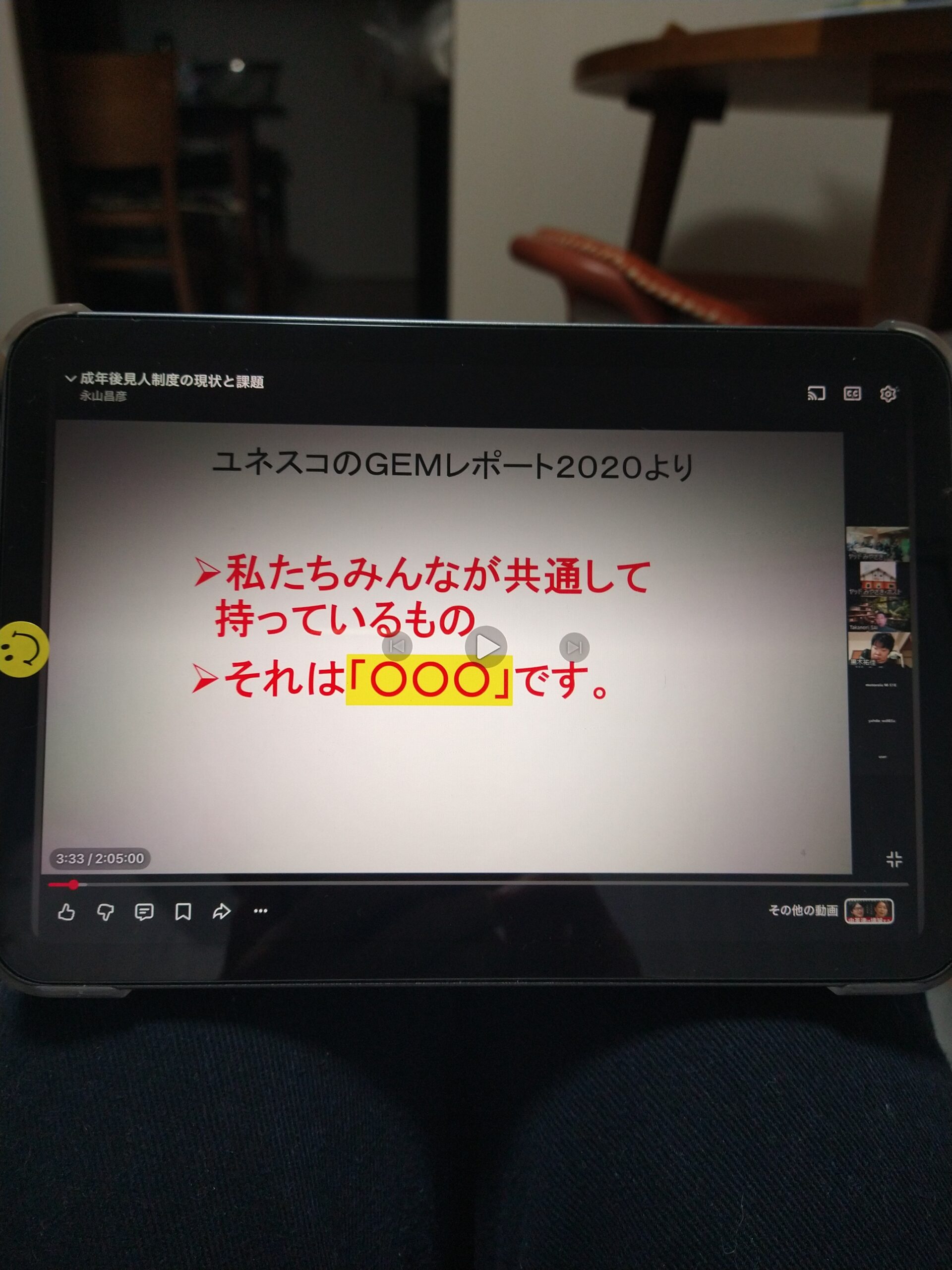 ヤッド!研修はzoomで崔栄繁さいたかのり講師により、ユニークな視点の紹介から始まった。いのち、こころ、けんり、オーディエンスからの反応に拍手をおくりながらも…