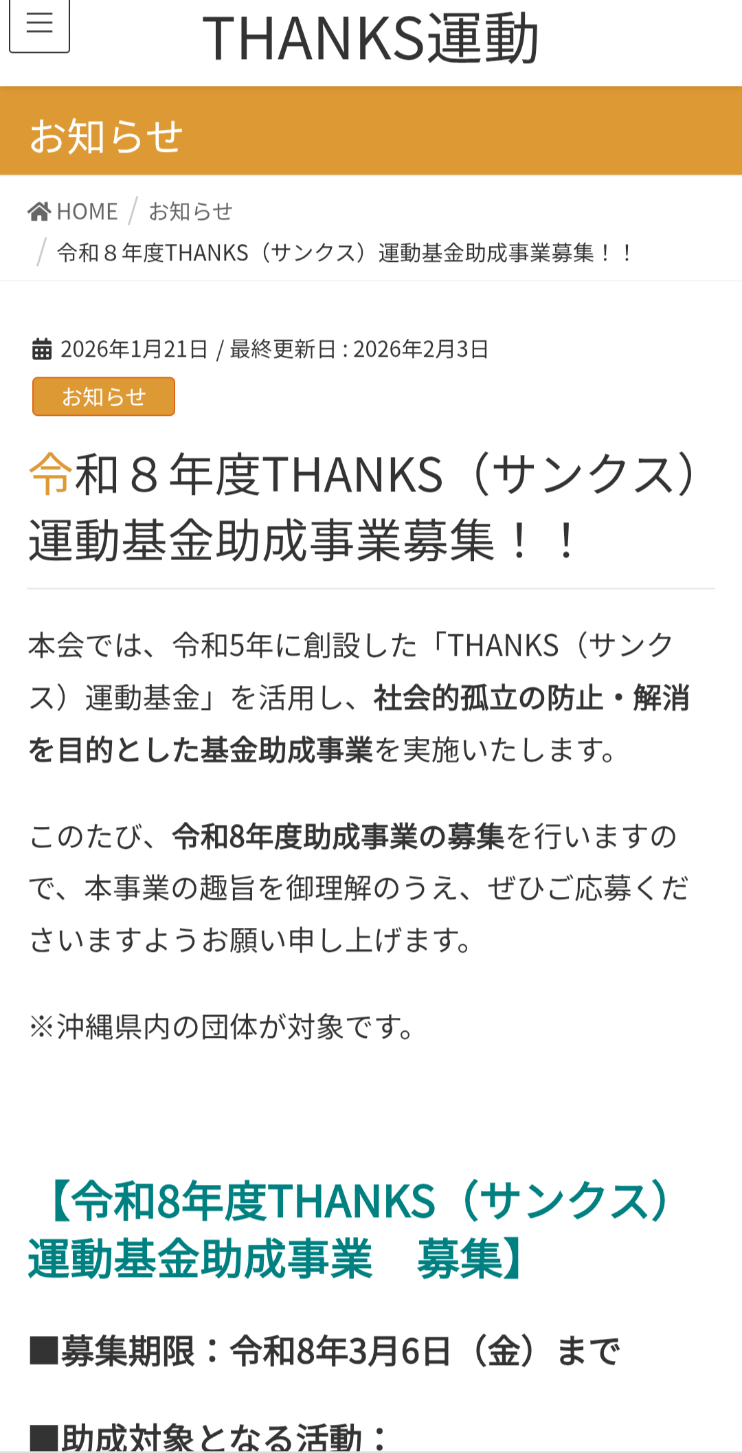 Home > お知らせ > ボランチュマガジン☆特別号☆THANKS運動基金助成(2026.2.4発行)